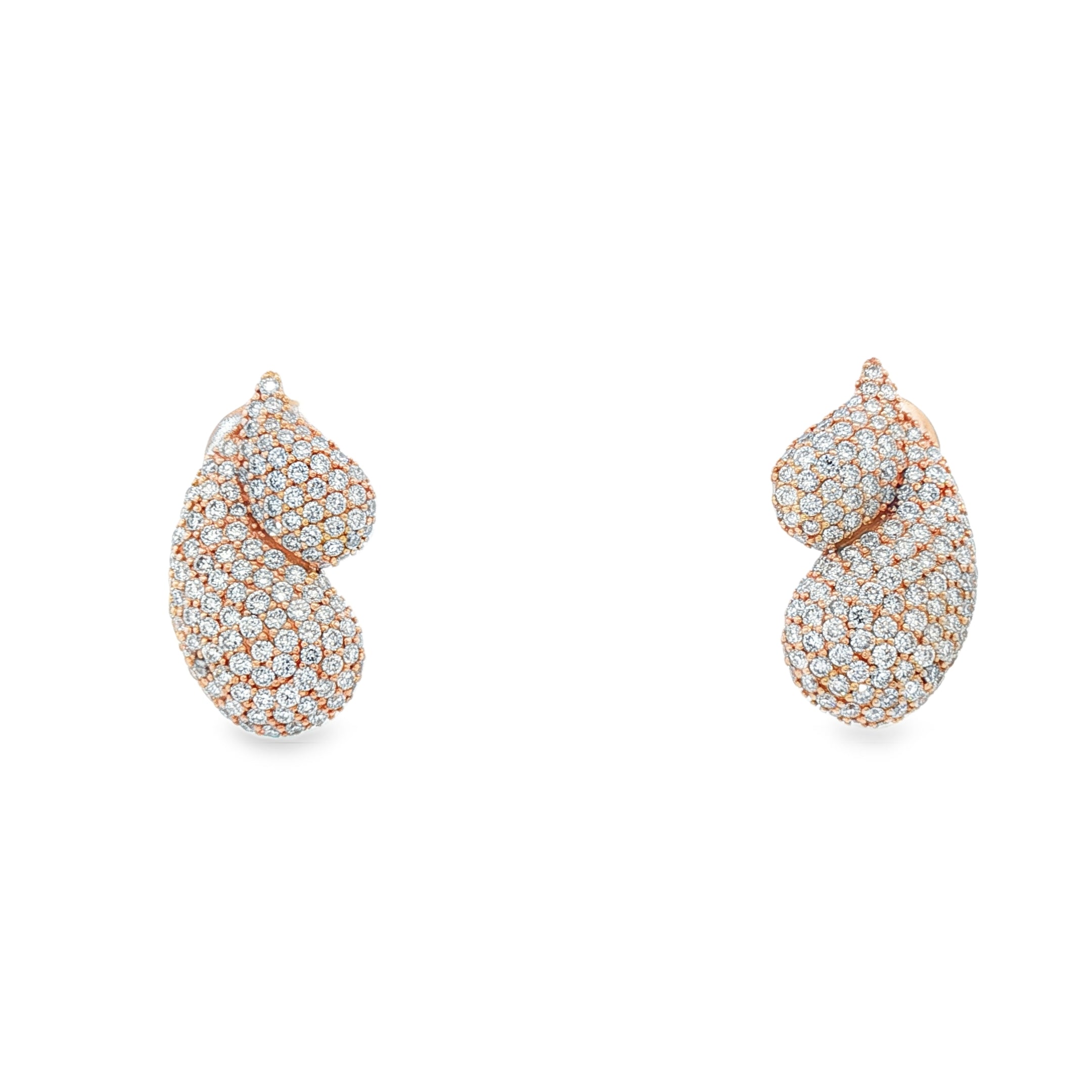 14kt yellow gold double tear drop pave diamond earring. Elevate your style with these exquisite stud earrings. Crafted from lustrous rose gold, these earrings feature a captivating design adorned with round cut, brilliant diamonds. The composition and arrangement of the diamonds add a touch of sophistication and sparkle to any ensemble. These earrings are a perfect balance of modern design and classic elegance.