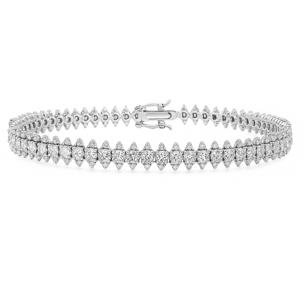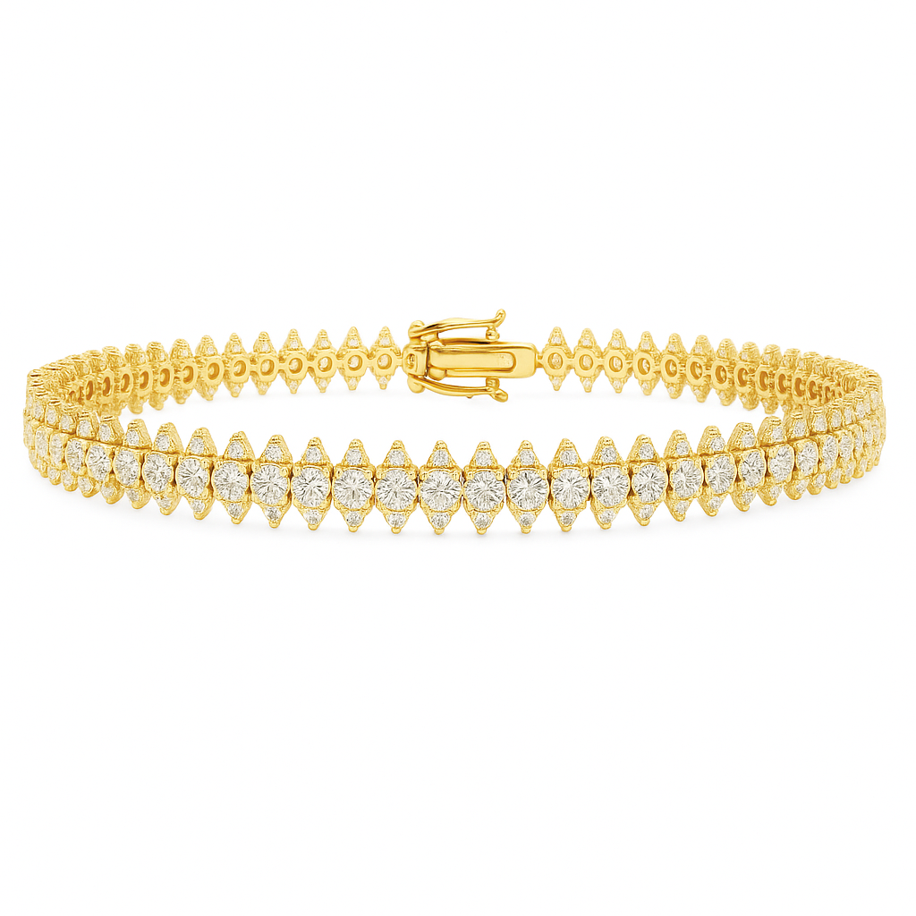 18kt gold medium diamond spike bracelet. Elevate your ensemble with this exquisite gold tennis bracelet. Adorned with brilliant-cut round diamonds, each meticulously set to maximize light reflection, creating a mesmerizing sparkle. A timeless piece that exudes sophistication and refinement, perfect for adding a touch of luxury to any occasion.