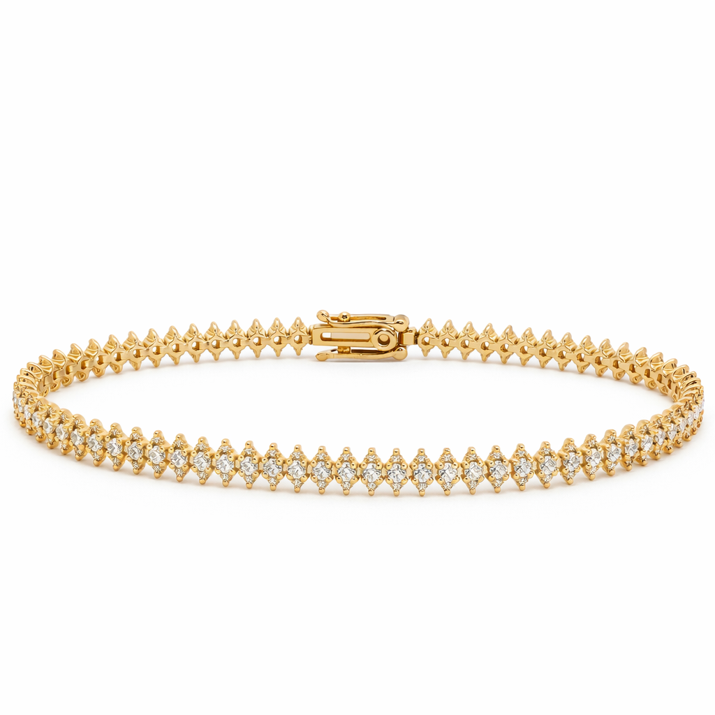 18kt gold small diamond spike bracelet. Exquisite tennis bracelet crafted in gold. Showcases a mesmerizing array of round cut diamonds. Each diamond is precisely set to maximize brilliance, creating a continuous stream of light and luxury. Perfect for adding a touch of elegance to any occasion.