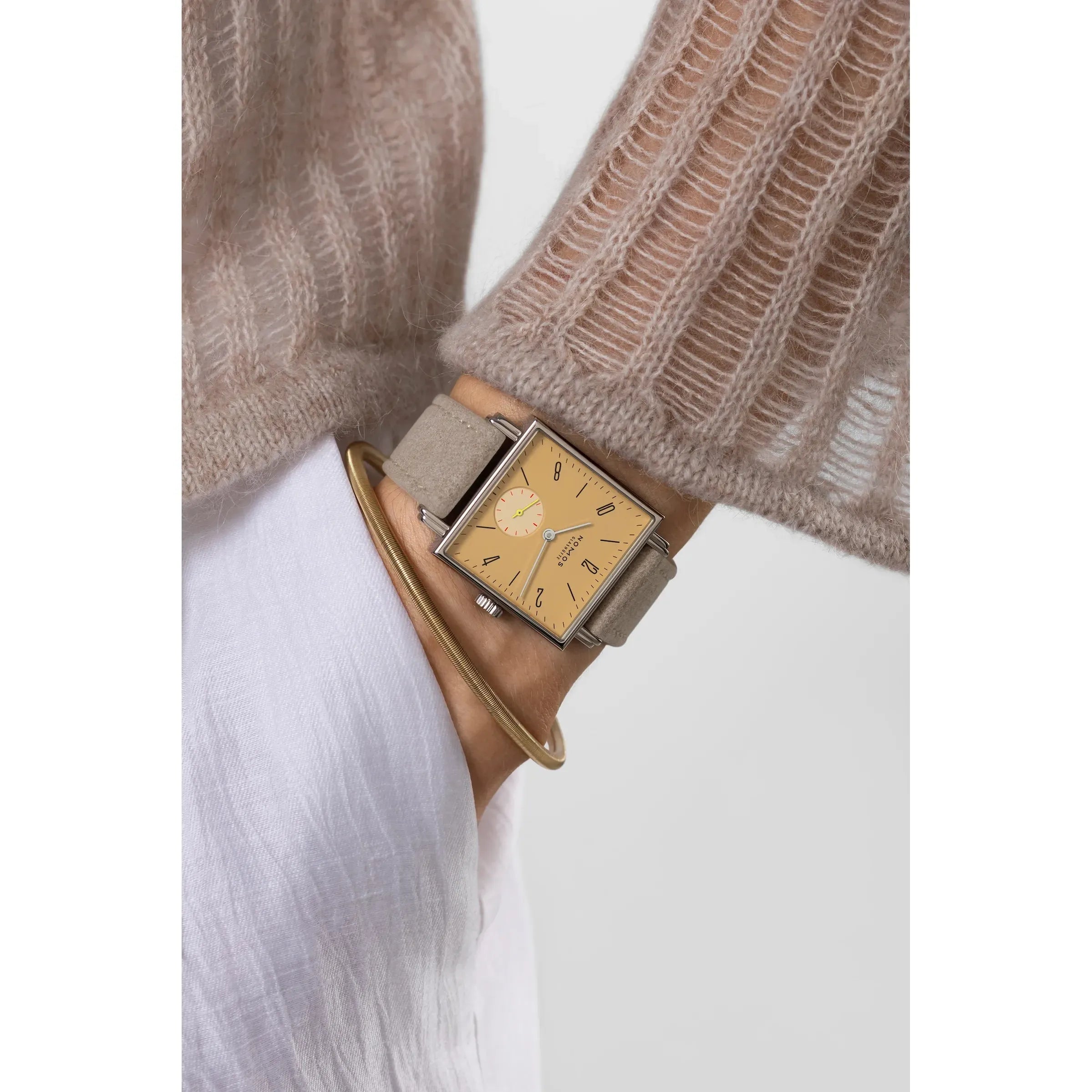 Drawn from pigments once treasured by artisans and ancient Egyptian royalty, Tetra Ochra glows with golden light. With its strikingly square case, this watch balances contemporary aesthetics with artisanal tradition. It also represents a philosophy—that true brilliance is found in the harmony of craft and character. The hand-wound caliber DUW 4001 at work within illustrates this with meticulous precision.