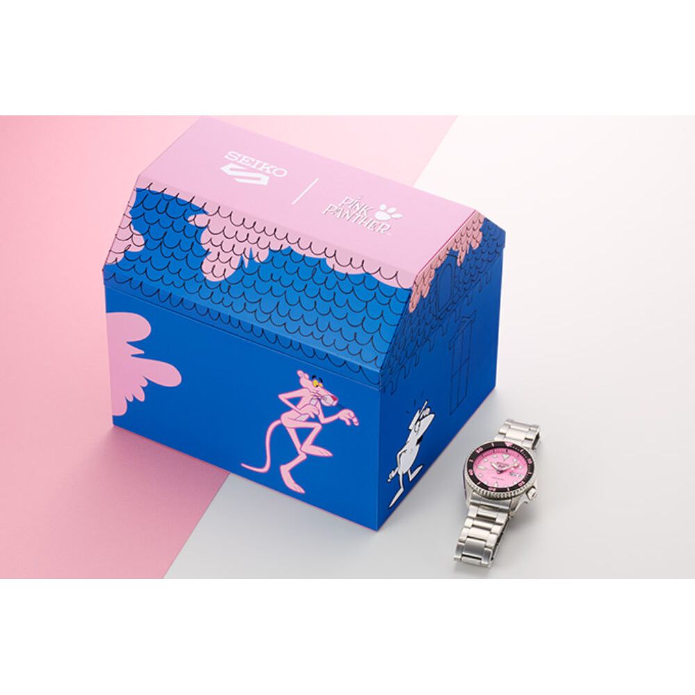 Based on the Seiko 5 Sports SKX series, this creation captures the world of the animated short comedy The Pink Phink. The story of the Pink Panther mischievously repainting the Little Man’s house in pink is reflected throughout the design, with the dial, bezel, and seconds hand accented in the character’s signature color. The dial also features the iconic footprints that lead the Little Man to discover the Pink Panther, adding a final accent that completes the playful and distinctive timepiece.