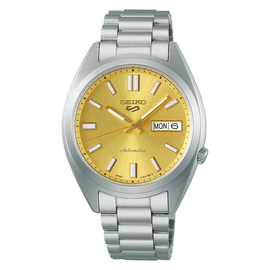 The sporty ivory dial features an orange seconds hand, which was used in many 5 Sports watches in the 1970s. The multi-faceted hour and minute hands reflect light while imparting a strong presence. Lumibrite is applied on the upper surface of the 11 bar indexes and the hour and minute hands.